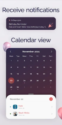 Birthday Reminder & Calendar is an app designed to help you stay organized and remember important birthdays and anniversaries of your loved ones. With this app, you can easily set up personalized reminders, view upcoming birthdays in one place, send wishes and cards, and even save gift ideas for your loved ones. This app is free and easy to use, making it the perfect tool for anyone who wants to stay on top of their social calendar.