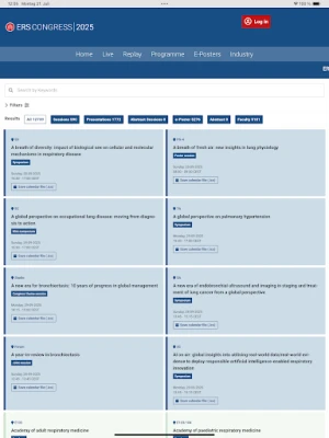 The ERS Congress 2025 app is the official companion for this year’s event, taking place in Amsterdam and online between 27 September – 1 October. The app can be used by all types of registered delegates to enhance their experience.
