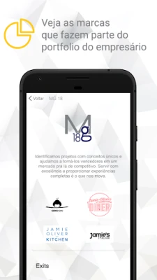 O Aplicativo Mg Corp apresenta diversas marcas das quais a MG Corporation administra as participações societárias do empresário Marcelo Goldfarb.