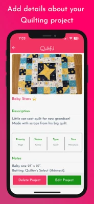 We hope you find the Quiltful app useful and that it helps you organize your projects. The goal is to