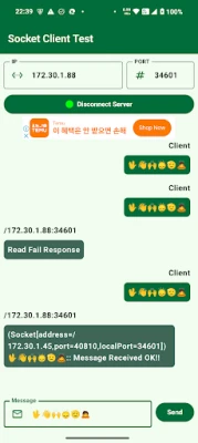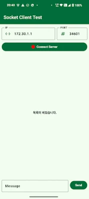 채팅 앱과 같이 메시지가 시간순으로 표시되며, 송신과 수신 메시지를 명확히 구분할 수 있습니다. 또한 서버와의 연결 상태를 실시간으로 모니터링하여 안정적인 통신을 보장합니다. ---- 개발자 연락처 : 강신범 광나루로40길 54-4 에덴빌, 24차 401호 광진구, 서울특별시 05037 South Korea 개인 계정 개인 계정 개인 계정