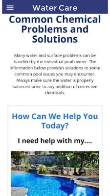 SERVICE & WATER TROUBLESHOOTER Have a pool or spa issue and need some help? Access our water care troubleshooter and pool school and find quick answers. Reach out to us directly through the app and get the help or service you need.