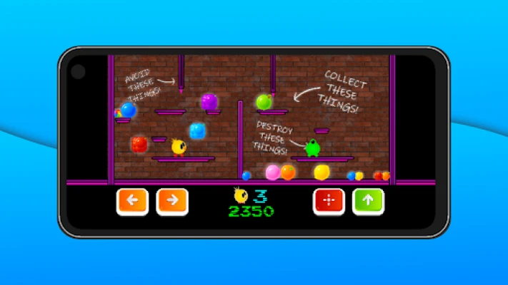The Thing is on a mission to reclaim the stolen fruit! Blast through enemy things territory, collecting every last piece of fruit and save the day. Each level presents new foes and challenges. Are you ready to join the fruity fight?